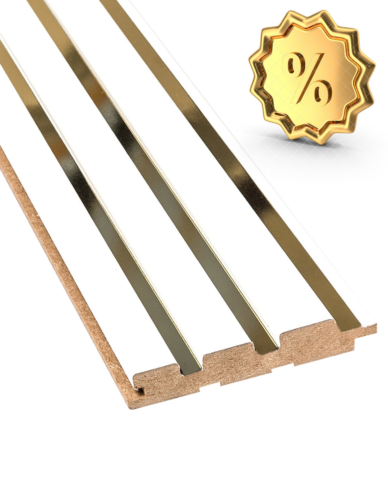 Riflajele din MDF cu oglinda acrilica aurie pentru interior reprezintă un element decorativ, foarte apreciat în designul modern. Disponibil cu livrare din stoc, diferite culori, dimensiuni de 2750 inaltime x119 mm latime, infoliat cu folie soft touch, eco prietenoasa cu mediul casei tale, fara continut de plastic sau pvc nociv pentru aerul respirat.