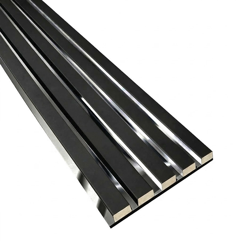 Panou riflaj decorativ premium din MDF negru cu inserții de oglindă argintie, înălțime 280 cm, creat pentru a transforma orice perete într-un accent elegant și modern. Acest model din gama de riflaje decorative combină finisajul mat Soft Touch cu reflexiile discrete ale oglinzii argintii, oferind profunzime vizuală, luminozitate și un efect sofisticat potrivit pentru living, dormitor, hol sau spații comerciale premium.